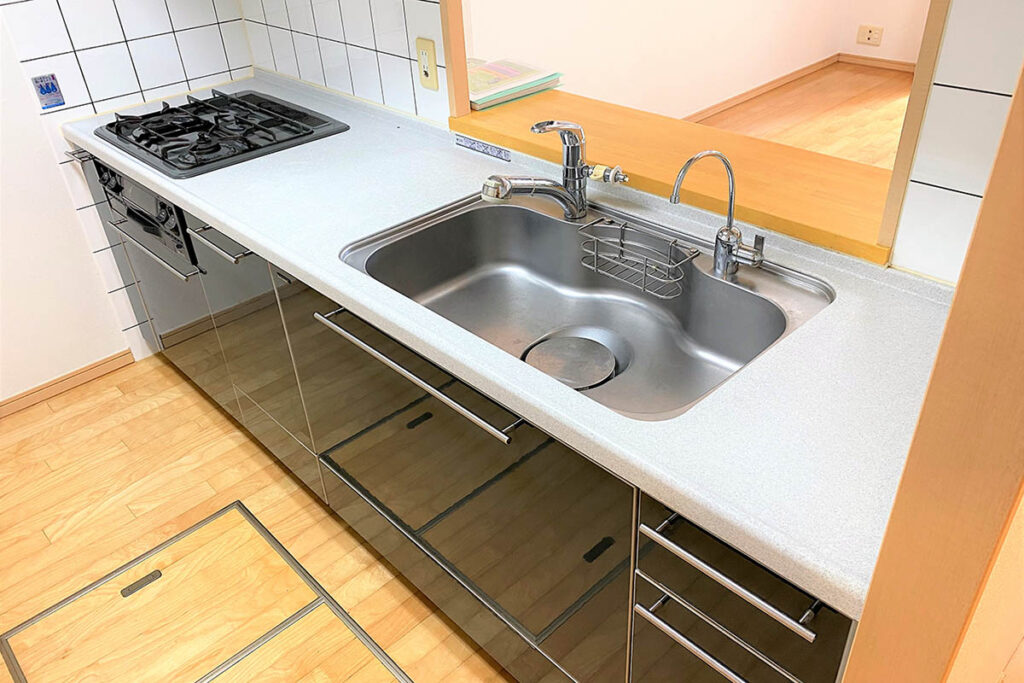 | 約17.3帖開放感のある広々LDKはナチュラルスタイル♪バルコニーから明るい陽射しが降り注ぎます☆床暖房設置でリビングダイニング足元あたたか☆ | 友人や家族とコミュニケーションをとりながら調理ができるカウンターキッチン♪たくさん調理するときに便利な3口コンロ据置き☆キッチン床下収納有り☆ |